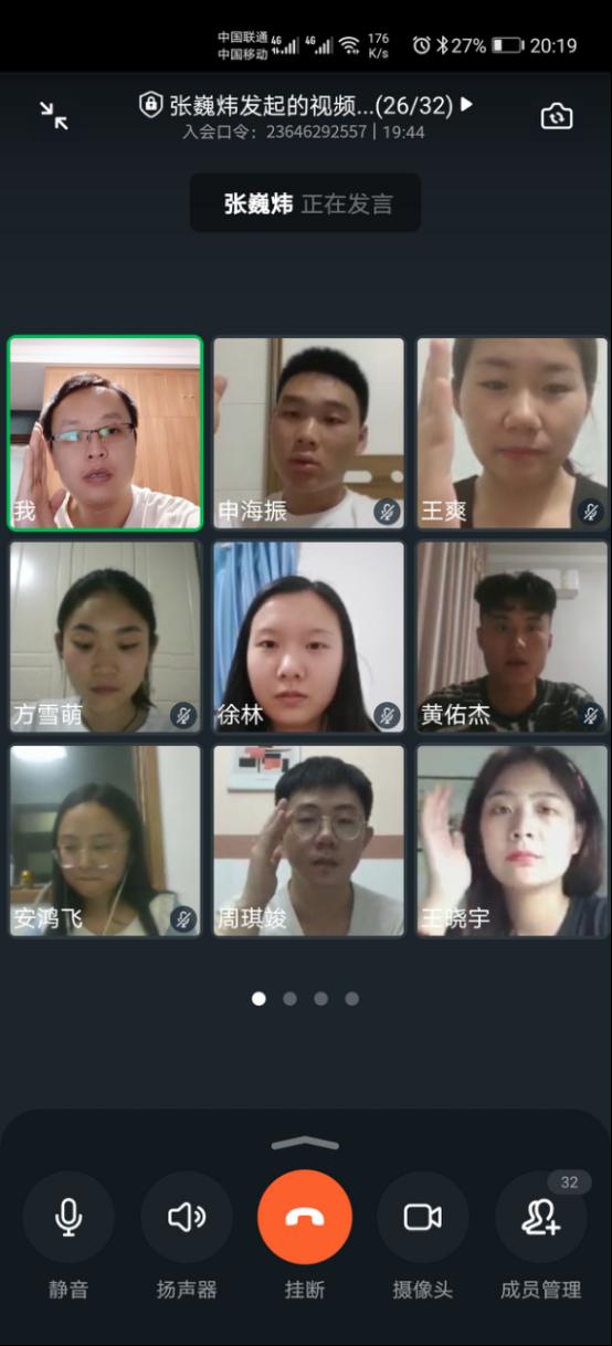 2020年6月4日20点,365VIP英国上市官网员工第四党支部召开支部预备党员转正大会,因新冠肺炎疫情防控要求,员工不宜返校,本次会议通过钉钉视频会议的形式举行,党支部全体师生党员参加了本次会议,会议由党支部书记张巍炜主持,对黄佑杰、罗晓阳等7名预备党员发展为中共正式党员进行讨论和表决。