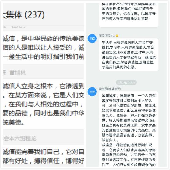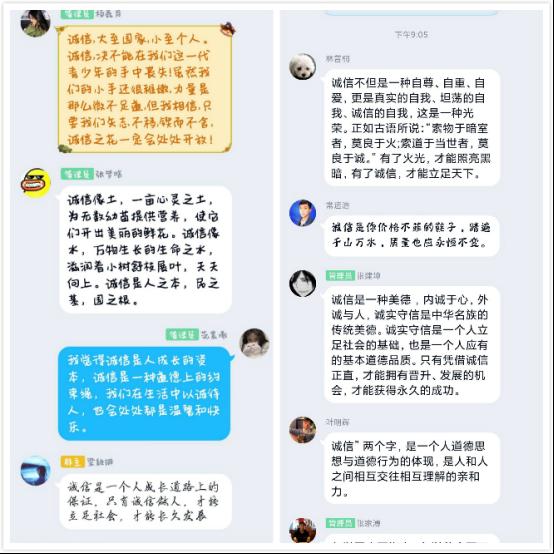 通过这此次线上的学习,我们全院师生更加深刻地理解到诚实守信的重要性,同学们也了解了诚信的意义。诚信是人必备的优良品格,一个人讲诚信,就代表他是一个讲文明的人。讲诚信的人,处处受欢迎;不讲诚信的人,人们会忽视他的存在;所以我们人人都要讲诚信。诚信是为人之道,是立身处事之本。