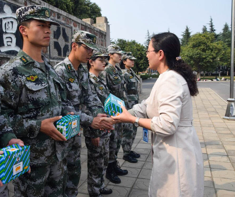 接着,张蕾书记为教官们发放礼物,并再次对其表示感谢。同时,希望同学们能够以更加严肃认真的态度、更饱满的热情投入到接下来的训练中,延续会计学子吃苦耐劳、勇往直前的精神!