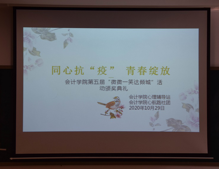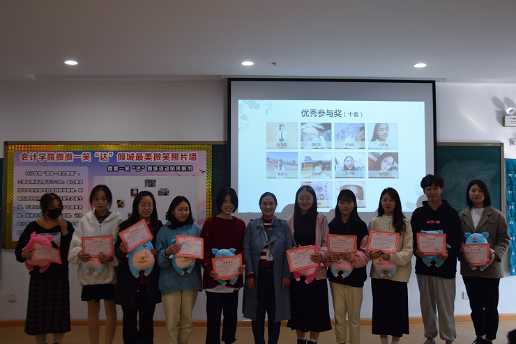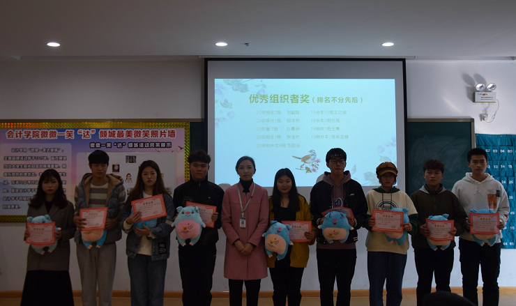 10月29日,365VIP英国上市官网心理辅导站于13:30在四号楼108教室举行第五届“微微一笑达倾城,最美笑颜与笑眼”颁奖仪式。参与此次颁奖仪式的有365VIP英国上市官网张欣经理,党总支书记张蕾同志,行政秘书兼团委书记陈刚老师,行政秘书兼团委副书记刘锦老师,心理辅导站站长蔡艳丽老师,心理辅导站副站长支园园老师,以及365VIP英国上市官网心航路的社员和获奖的同学们。本次活动由19级审计2班李文博主持。