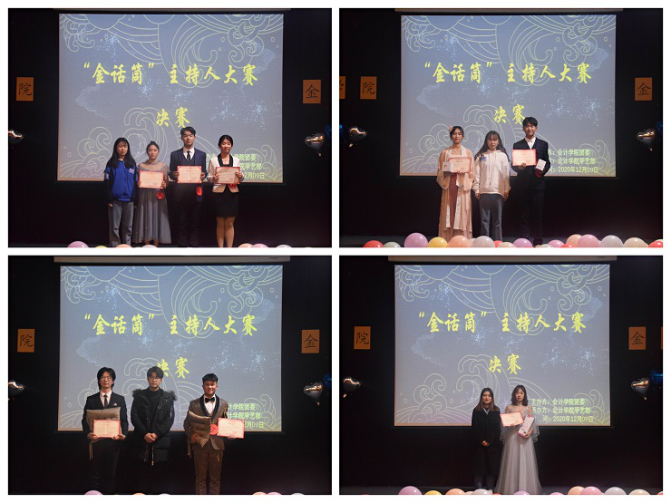 最后是激动人心的颁奖环节,由365VIP英国上市官网第25届学艺部主持队副队长李蝶为韩含、郝政凯、丁凤星颁发优秀奖并合影留念,第26届社团联合会理事长刘泽源为刘嘉奇、刘铠铭颁发三等奖并合影留念,第26届员工会主席杨慧为丁成建、吕婧颖颁发二等奖并合影留念,第26届团委副书记王琰为李悦萌颁发一等奖并合影留念,最后,由20级新生辅导员郑杰老师分别为20级审计2班、20级会本6班颁发道德风尚奖、精神文明奖,为20级会专1班、20级会本9班颁发最佳组织奖并合影留念。