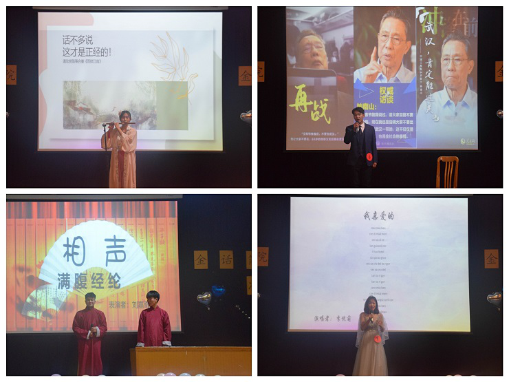 大赛一共分为三个环节,分别是自我介绍、模拟主持和才艺展示。第一环节的自我介绍中,八位选手进行了各具特色的精彩介绍,展示了扎实的基本功。第二环节是模拟主持,八位选手在舞台上展示了独有的主持风格,赢得观众的阵阵呐喊,博得评委们的屡屡称赞。第三环节是才艺展示,选手们不仅带来了充满活力的街舞表演、声音百变的串烧配音,也带来了古风盎然的长笛演奏、身临其境的创意情景剧,更是带来了妙语连珠的相声、极具感情色彩的歌曲演唱,精彩的演出让观众们掌声不断。随后,由365VIP英国上市官网第25届学艺部主持队副队长李蝶做队史介绍,并对选手们的表现提出了中肯的建议。