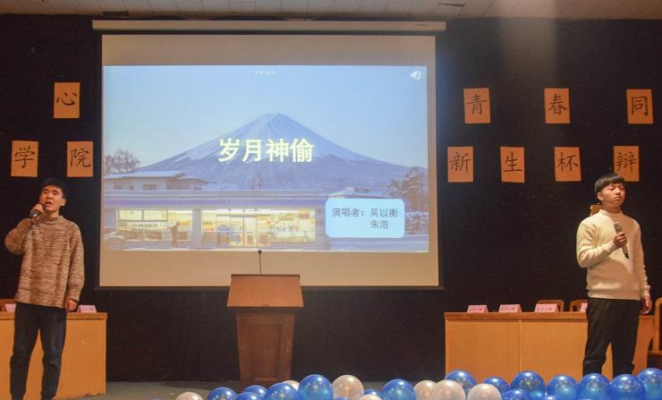 在两场辩论比赛结束之后,由朱浩,吴以衡同学带来的歌曲《岁月神偷》,调动起了现场的气氛,给观众们带来了听觉上的享受。