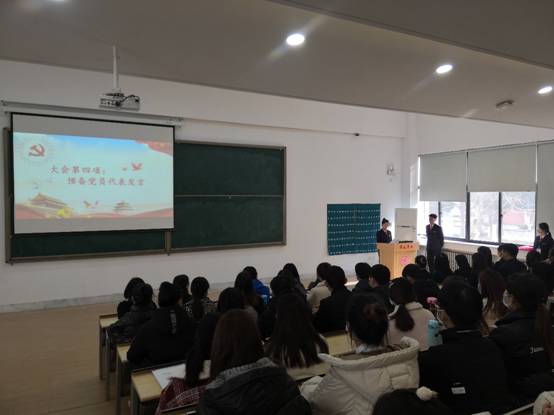 宣誓结束后,由江美玉同志代表新发展党员发言,表示要进一步提高自身思想政治修养,在学习和工作中,充分发挥党员的先锋模范作用,不忘入党初心,牢记党员使命。