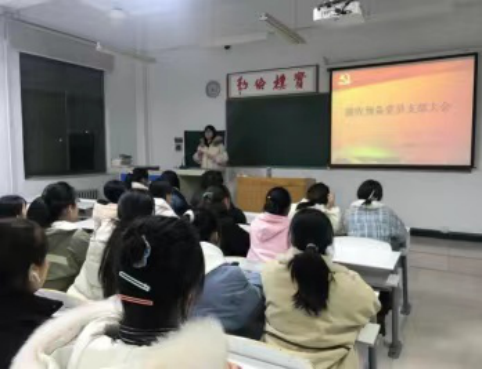 郑杰同志首先对党支部的情况进行了简单介绍,紧接着宣读了会议流程。按照组织工作程序,黄娇娇、王嘉雯、石佳欣、赵佳娣、胡梦冉、于瑞等6名预备党员分别表述了自己一年来的个人表现,并表示今后以一名党员严格要求自己,更加积极向上的态度迎接接下来的学习生活,努力学习科学文化知识,提高自身的本领。