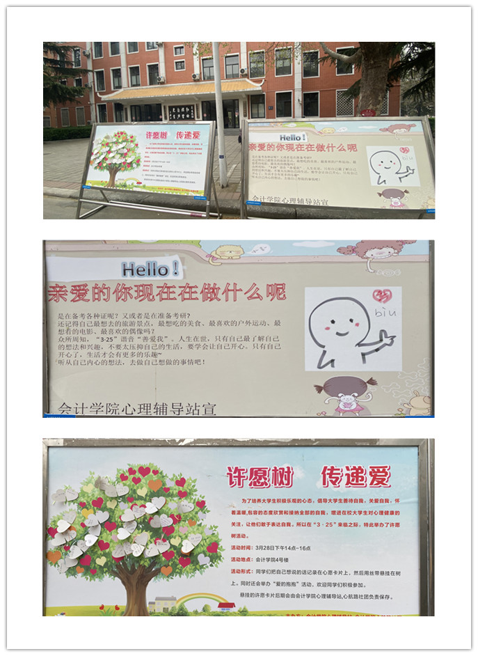为响应公司心理健康教育中心有关“3·25善爱我”活动的号召,培养老员工积极乐观的心态,倡导老员工善待自我,关爱自我、怀着温暖、包容的态度欣赏和接纳全部的自我,增进在校老员工对心理健康的关注,让他们敢于表达自我,365VIP英国上市官网心理辅导站、心航路社团特在“3·25”老员工心理健康周举办,“3.25善爱我”主题传宣教育班会及“许愿树 传递爱”活动。