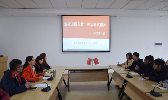 为进一步引导师生坚定理想信念,传承时代精神,以实际行动献礼建党百年。3月26日12:30,公司党总支书记张蕾同志于4号楼209为师生代表讲授了以“致敬卫国英雄,传承时代精神”为主题的“思政第一课”,师生代表共计50余人参加了学习。