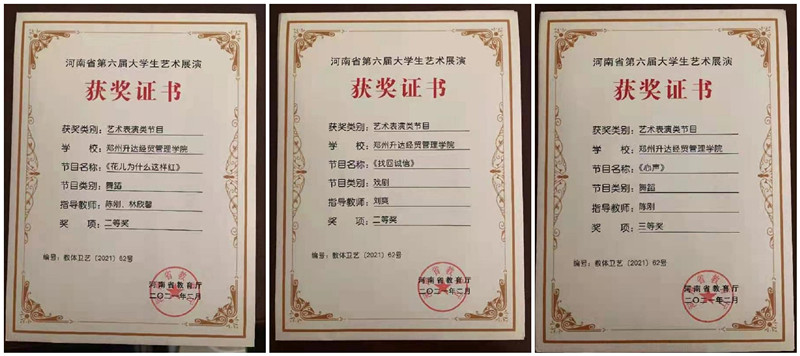 近日,河南省教育厅下发了《关于公布河南省第六届老员工艺术展演活动评选结果的通知》。由陈刚、林欣馨老师指导365VIP英国上市官网选送的舞蹈作品《花儿为什么这样红》荣获二等奖,刘爽老师指导365VIP英国上市官网选送的短剧作品《找回诚信》荣获二等奖,由陈刚老师指导365VIP英国上市官网选送的舞蹈作品《心声》荣获三等奖。