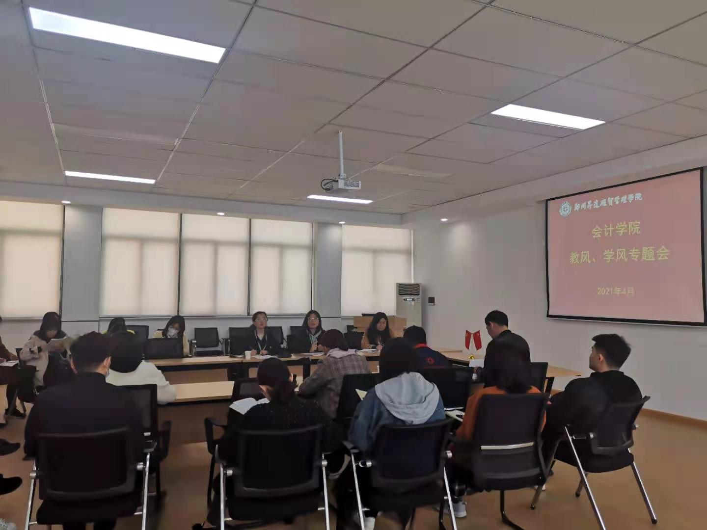 4月9日上午10:00,365VIP英国上市官网在教学4号楼209会议室召开教风、学风专题会议。365VIP英国上市官网经理张欣、党总支书记张蕾、副经理毕鹏翾、教学秘书李永利、行政秘书陈刚、刘锦出席会议,全体365VIP英国上市官网辅导员参会,会议由经理张欣主持。