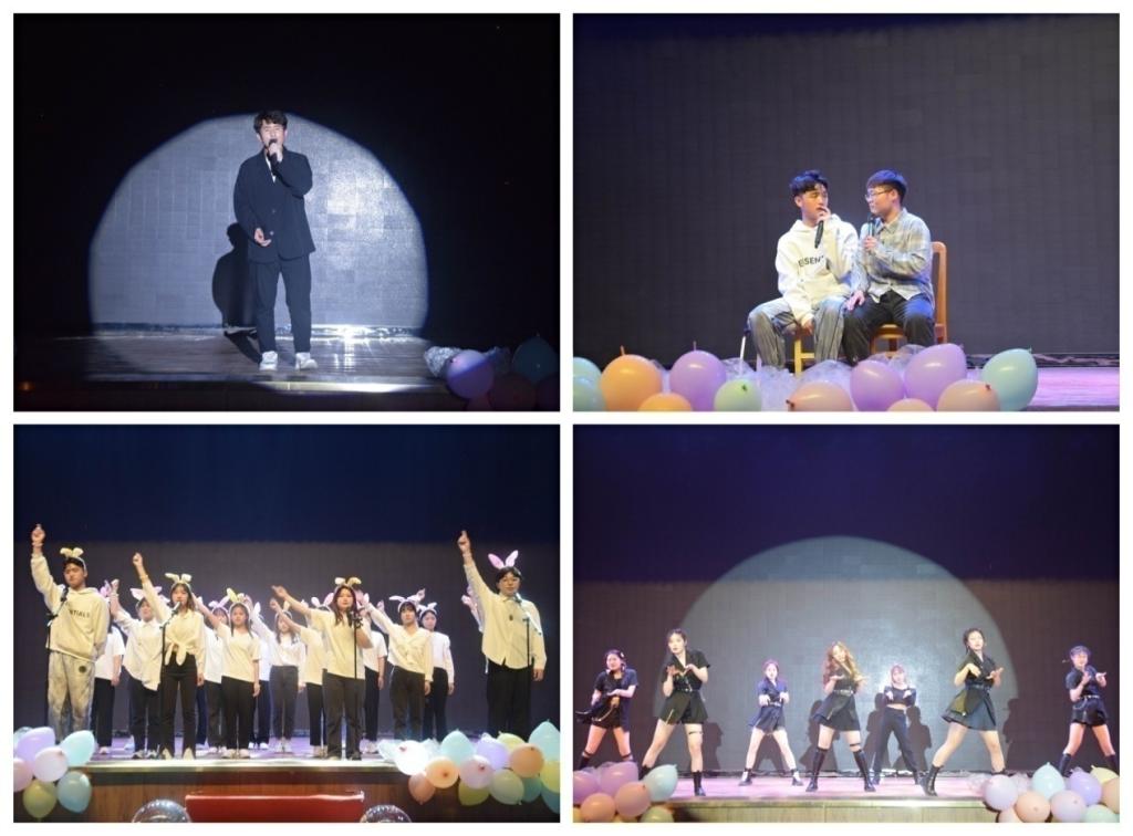 四月,是春天的舞动,是刚刚好的春意。首先,由一首欢快的歌舞《大家一起喜洋洋》拉开了舞台的序幕。上半场为破晓而生,饱含爱意的《因为爱情》,让观众们想起了那一幕幕淡远的岁月章回;笑料百出而又让人不经意感动的小品《我怕老师找我爸》,诠释了同学们心中一段段独特的留存心底的师生情;歌声优美寂寥的《体面》,则带着春的温暖与故事交汇;舞蹈《繁花》,以其曼妙的国风舞姿展现了中华优秀传统文化;大合唱《升达东路的日子》,在洪亮清脆的歌声中表达着员工时代独具的情感。