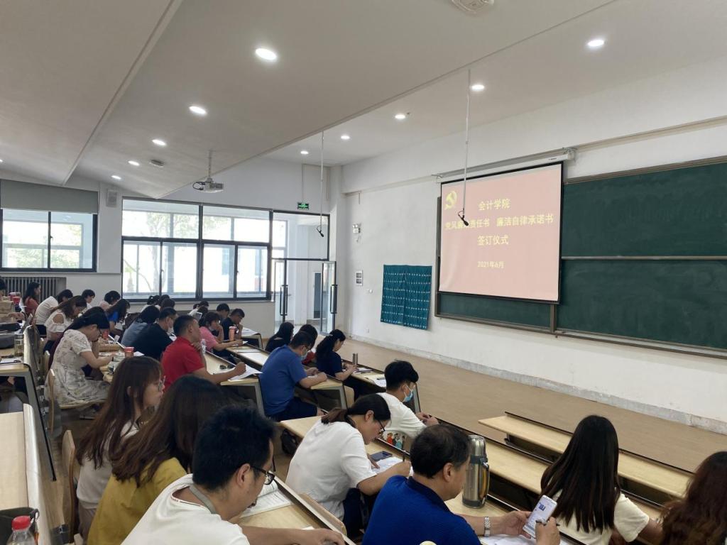 随后,签订仪式正式开始,经理与公司副经理、教研室主任、实验室主任签署责任书,各教研室主任与教师签订承诺书,党总支书记与行政秘书、组织员、辅导员签署承诺书,形成了全方位、全覆盖签订,一级带动一级,层层传导压力。