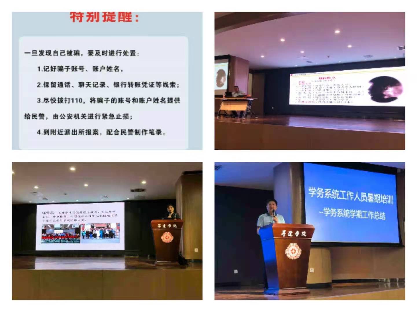 为积极响应公司学工队伍系列培训的号召,进一步加强辅导员队伍建设,提升辅导员工作技能技巧,全面落实立德树人根本任务,并提高辅导员业务水平,学务处组织公司学工人员自7月6日-7月9日开展了一系列培训,内容包括:电信网络诈骗防范、消防安全防范、老员工心理健康教育与辅导员素质能力培养、员工学期工作要点总结等。