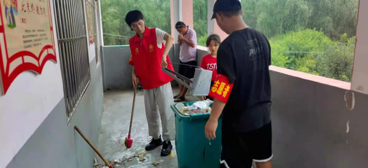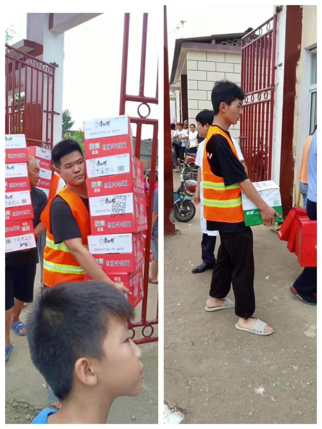 凌雅博同学与李永凯同学均来自河南周口,周口作为泄洪区,防汛情况紧急。两名同学既是同学,又是老乡。在看到家乡情况如此紧急,两名同学内心感到十分不安,认为作为周口人、作为老员工,不应坦然接受帮助,应该为家乡人民做些什么。他们主动加入紧急安置点的服务队,负责帮助群众转移发放救援物资,及时处理安置点的垃圾,为保障群众的衣食住行正常做出努力。