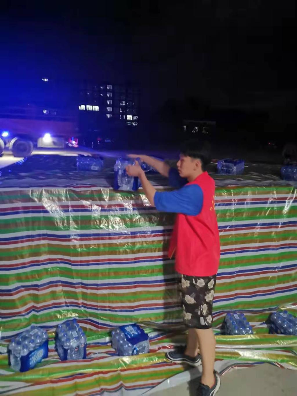 7月24日—27日,公司党支部书记:教师何保国,辅导员郑文杰,分别于郑州市二七区、高新区参与青年志愿者服务团工作。主要负责帮忙卸载全国各地运往郑州、新乡两地的援助物资、分装送往各救灾点的救灾物资。两名党员同志分装4卡车瓶装水约2500件,香菇酱100件,装车瓶装水1000件,救援药品两车约300箱。