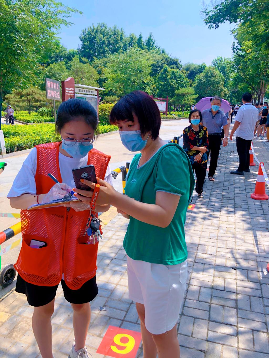工作期间,群众们都极其配合防疫,但是由于中老年人居多,有的是老年机,有的不太会使用智能手机,所以就需要这些志愿者来帮助他们完成信息录入扫码,进一步完成核酸检测工作的快速开展。而通过这次亲身经历,让我们真切感受到一线医务工作者的不易。穿上防护服后,第一感受就是觉得很闷,快喘不过气来了,里面的衣服湿了又干,实在受不了了,就向自己的防护服喷洒酒精,感受短暂的一点点凉爽,一天下来,感觉像是在汗蒸房里蒸了无数次一样,虽然很辛苦,但听到别人的一句句感谢,感到付出没有白费。
