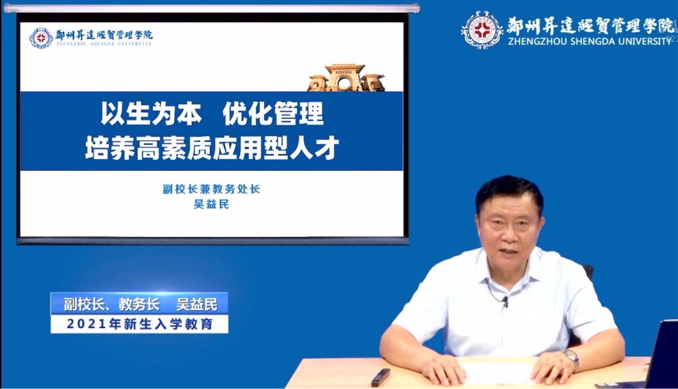 随后,副董事长兼教务长吴益民对2021级新同学表示热烈的欢迎,并从升达公司的人才培养特色、人才培养条件、教学管理、对员工的要求等方面向同学们展示了公司的软实力, 吴董事长还向同学们详细介绍了升达的团队队伍、教学成果、专业建设、实验条件建设、学籍管理、双学位教育、创业指导等等,为同学们了解、熟悉升达夯实了基础,也为同学们即将开始的大学学习和生活指明了方向。