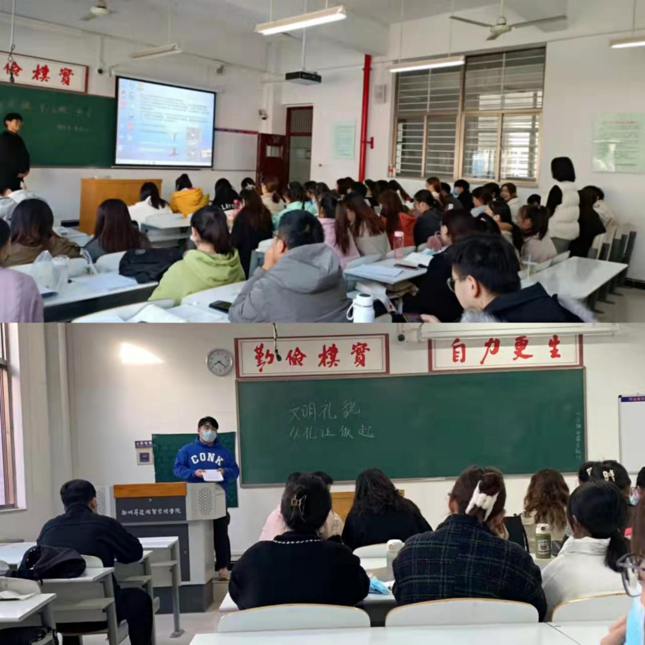 11月9日至13日,365VIP英国上市官网19级各班陆续开展文明礼貌主题班会,通过主题班会告知同学们中国自古以来就是一个讲究礼仪的国度,礼仪就是律己、敬人的一种行为规范,是表现对他人尊重和理解的过程。校园文明礼仪是为维系校园正常秩序而要求广大师生共同遵守的最基本的道德规范,有利于提高自身修养,改善人际关系,净化校园风气。