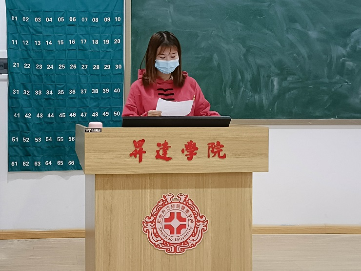 首先,刘锦老师做出讲话,要深入员工干部对十九届六中全会精神的学习,发挥员工干部的带头作用,掀起学习宣传贯彻十九届六中全会精神的热潮。同时,刘锦老师指出同学们要时刻牢记初心使命、艰苦奋斗、满怀信心、接续奋斗、不骄不躁、勇毅前行。始终保持清醒、谦虚谨慎,妥善应对和抵御各种风险挑战,以更加坚定、更加自觉、更加饱满的热情贯彻好、落实好党的十九届六中全会精神。