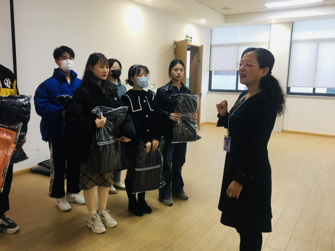 之后,张蕾书记为同学们送上了御寒的棉衣,并嘱咐同学们穿着温暖的冬衣,期末认真复习备考,平安回家、过个好年。