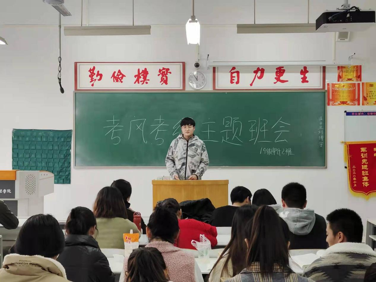 此次班会,分为三个阶段进行。首先向同学们宣读考试违纪处分细则,明确了校规校纪的考试规定,并强调诚信考试、公平竞争,营造良好考风考纪的必要性和重要性。通过讲述具体实例,对违反考风考纪的严重后果做出警示。其次介绍本次期末考试安排内容,强调365VIP英国上市官网历来重视考风考纪建设,提醒员工认真备考,不要存在侥幸心理,自觉诚信对待考试,提高自身责任感。最后由班长带领同学们发表了关于“遵守校规校纪,端正学习态度,严肃考风考纪,确立诚信之本,遵从学术规范,树立道德新风”的相关发言与决心。