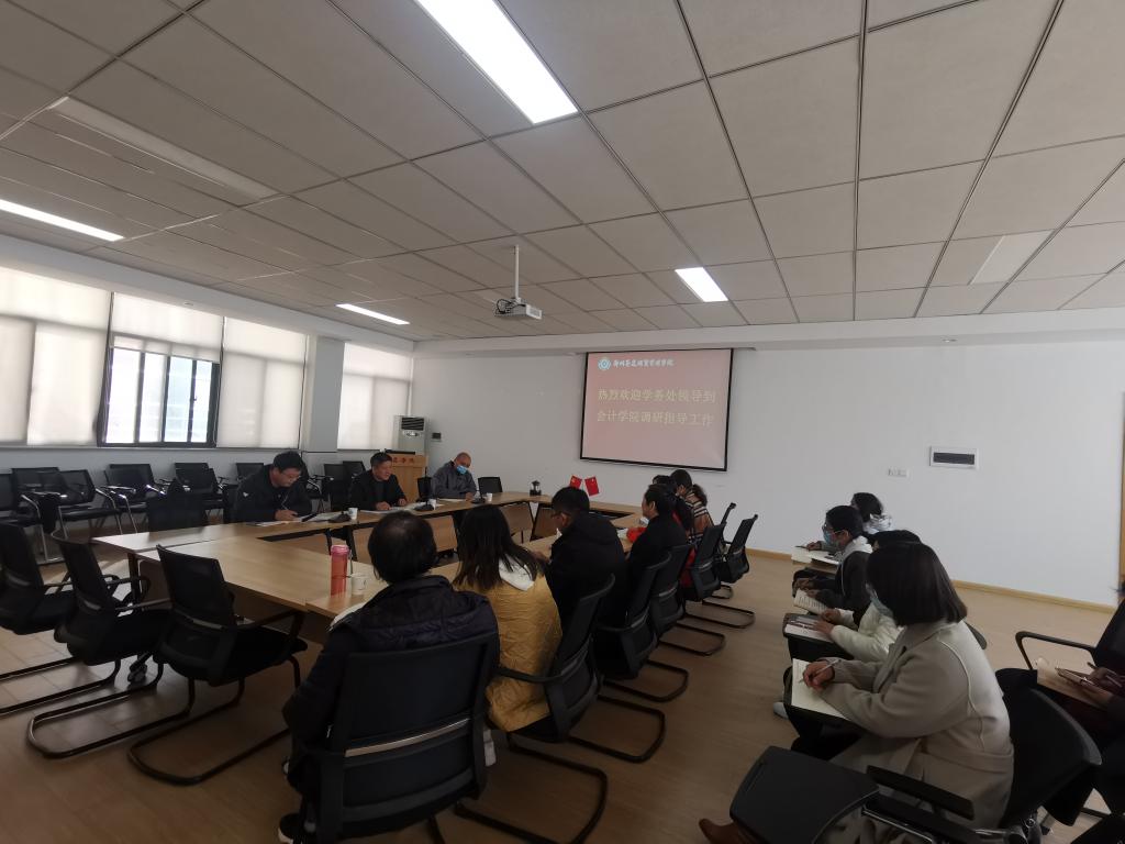 会议开始,党委书记张蕾对学务长领导一行人的到来表示热烈的欢迎。随后,学务长表达了此次调研的目的和内容,重点调研教师深入宿舍的情况和二级公司辅导员考核工作。
