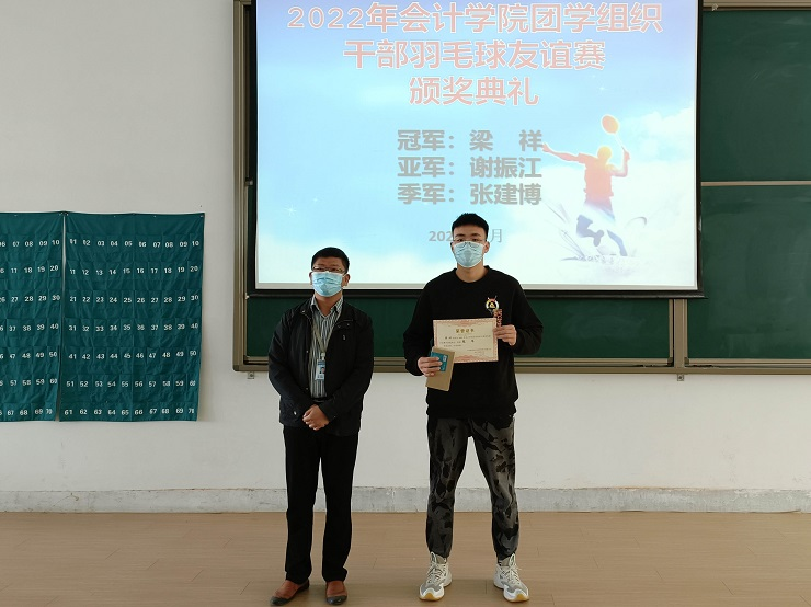 比赛结束后,由365VIP英国上市官网20级辅导员高园园老师,21级年级团总支书记、辅导员刘瑞雯老师,行政秘书兼团委书记陈刚老师分别为季军张建博同学、亚军谢振江同学、冠军梁祥同学颁发荣誉证书和奖品并拍照留念。