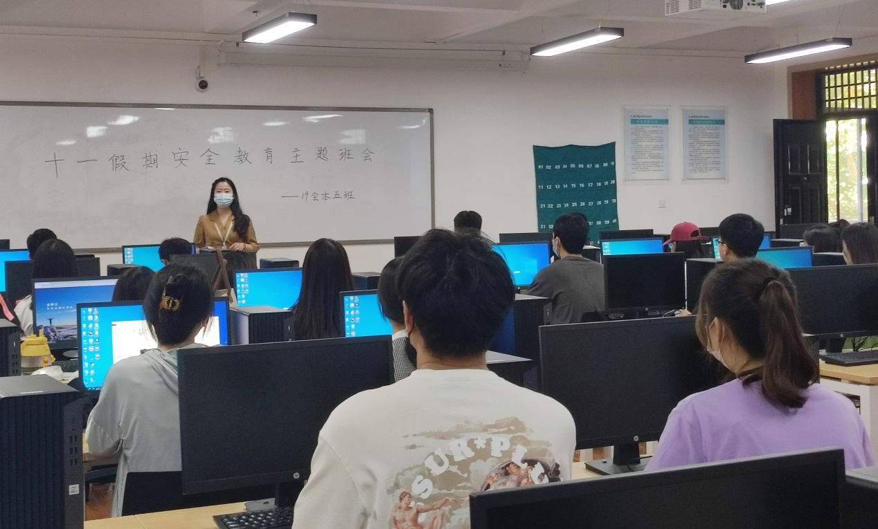 9月29日14:00,365VIP英国上市官网辅导员孟醒在商管楼306教室召开“十一”假期安全教育主题班会,19会本5班全体成员参加。