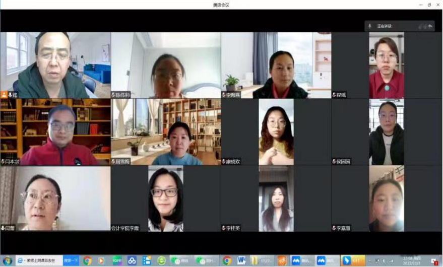 2022年11月3日,双创教研室主任周锋主持召开了线上研讨会,研讨会主题主要有两个:一是教学大纲设计与课程质量评价培训会内容学习与研讨,二是就2023届毕业论文选题与开题进行研讨。双创教研室全体教师参加了本次会议。