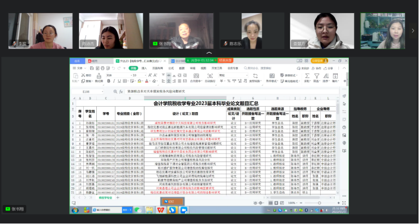为进一步提升毕业论文质量,2022年11月3日,税收教研室组织召开了“2022届毕业论文工作总结及2023届毕业论文选题与开题”线上研讨会,税收教研室全体教师参加了本次会议。