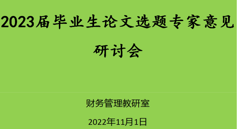 为了进一步提高2023届毕业论文选题质量,顺利开展毕业论文开题相关工作。2022年11月1日,财务管理教研室主任何保国教授主持召开了2023届毕业论文选题与开题研讨会议,财务管理教研室全体教师参加了本次会议。
