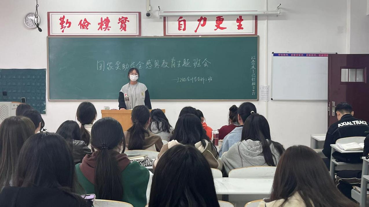 对于贫困的同学来说,国家奖助学金不仅可以有效缓解他们的生活负担和学习压力,还能让他们坚定学习的信念,保持积极向上的学习态度。各个班级通过班会形式,邀请国家励志奖学金、助学金的获助者分享了他们的感想,奖助学金的获得让他们对生活充满了希望,对于国家资助政策给他们带来的帮助也表示十分地感恩,他们表示要努力学习,不辜负国家的期望,心怀一颗感恩之心,让梦想起航,为了中国梦去拼搏,去奋斗,共同迎接祖国灿烂的明天,收获人生的累累硕果!