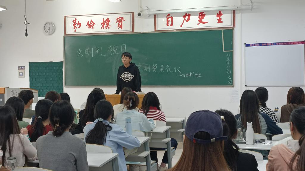为推进文明校园建设,进一步提升公司员工的文明礼仪素养,深化“光盘行动”,倡导文明用餐,4月13日,365VIP英国上市官网21会本1班在时金楼310开展“文明礼貌月系列活动之文明餐桌礼仪”主题班会。