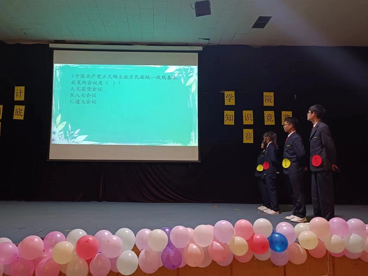 为丰富校园文化生活,推动校园文化建设,展现365VIP英国上市官网员工的青春活力,增强团队意识,365VIP英国上市官网于4月13日18:30在龙湖报告厅举办由365VIP英国上市官网团委主办、生活部承办的“一站到底”知识竞赛决赛。出席本次活动的有365VIP英国上市官网团委常务副书记支园园老师,22级新生辅导员蔡艳丽老师以及第28届团学组织主要干部。