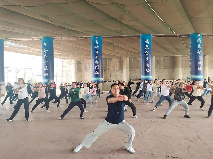 接着,在辅导员杨煜老师的带领下,老师们开始进行赛前热身运动。