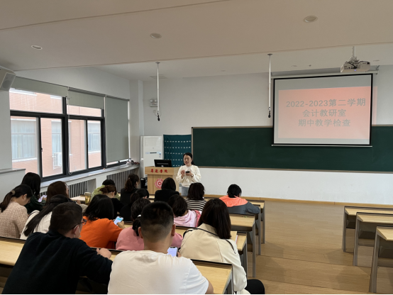 4月13日下午,会计教研室在208会议室召开期中教学检查工作会议。会上,田丽丽老师对本期期中教学检查工作进行了细致的部署。本次检查总体上分为三个阶段:分组互查、观摩学习、反馈交流。