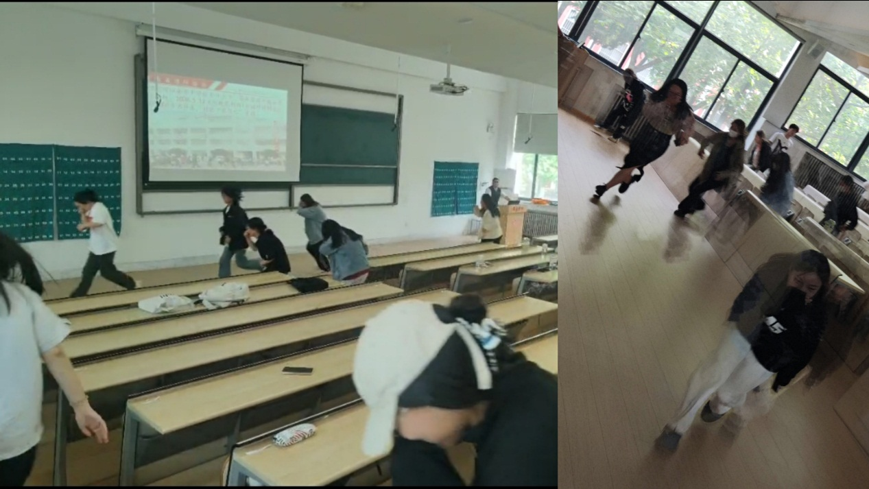 在演练环节,彭冲教员为大家讲解了正确的疏散逃生方法,员工们在老师的组织下,有序开展了疏散逃生演练。随着消防安全警报的拉响,员工们捂住鼻子和嘴巴,弯着腰,按疏散路线有序撤离,到达指定地点汇合。整个逃生过程当中,员工们做到了快速行走、无抢行、冲、挤行为,动作迅速,不吵闹,不慌乱。这次演练使同学们掌握了逃生的基本要领,深刻理解到逃生秩序的重要性。