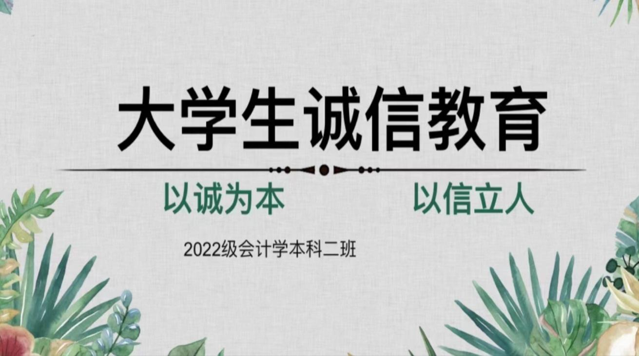 2022级会计学本科2班以《老员工诚信教育》为主题,以线上PPT展示和线下班会相结合的方式开展了此次宣传活动。会议从诚信是什么及重要性、国家助学贷款、诚信还贷、理性消费拒绝不良贷款四个方面进行了详细讲解。
