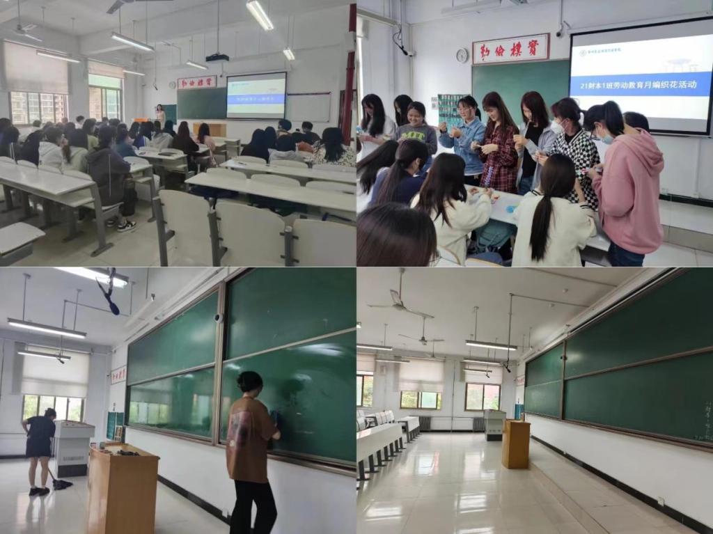 21财本1班在辅导员支园园老师的指导下,紧紧围绕“礼赞劳动,赋能成长”主题,在本学期“劳动教育月”积极开展各项活动。先后召开劳动教育主题班会,劳动教育月宣讲会,劳动教育编制花活动,宿舍及责任教室卫生整改等系列工作。在本次专题活动中,班级全体成员学习了劳动教育理论知识,掌握了手工花的编制,通过视频学习了焦裕禄精神,积极对宿舍及责任教室卫生进行大扫除。21财本1班通过劳动教育理论与实践相结合的方法,既让员工享受到劳动带来的喜悦,培养了员工的劳动意识,提升了员工的劳动技能,也丰富了本校劳动教育课程内容,促进校内劳动常态化、校外劳动生活化,提升了员工的核心素养。