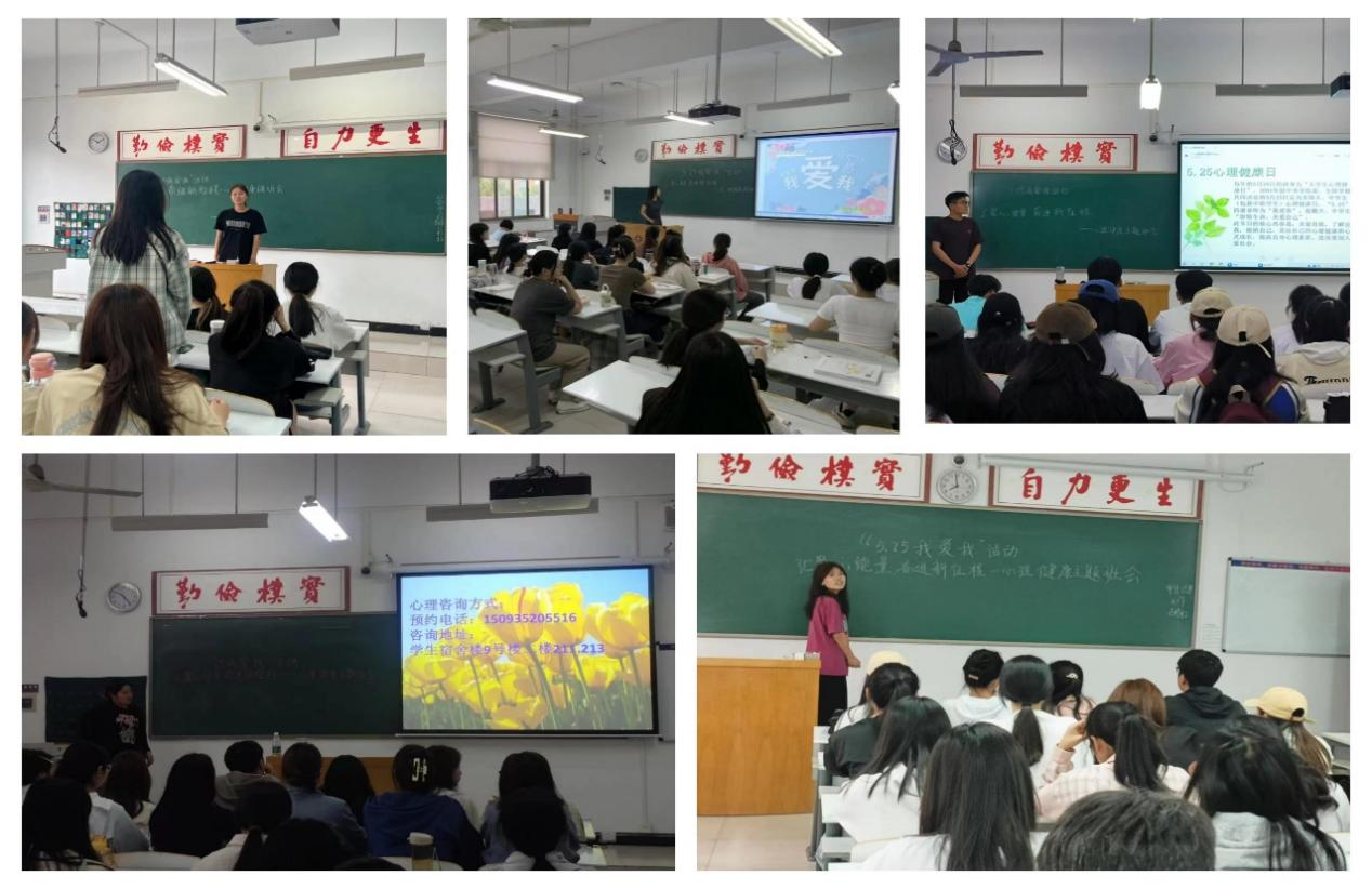 班会初始,各班心理委员结合班级实际情况对本次班会的目的和意义做出说明,同时提出了现今同学们遇到的主要心理健康问题,如大学人际交往及学业就业压力、生活情绪焦虑等。通过讲解PPT让同学们了解更多的心理健康知识,帮助同学们积极的调整心态,引导同学们将心理健康知识掌握的更加全面,倡导同学们关爱自己,关心他人,学会悦纳自己。随后,分别向同学们介绍公司心理健康中心以及公司心理辅导站,包括位置、预约电话、咨询时间地点等,同学们遇到问题可以到公司心理健康中心或365VIP英国上市官网心理辅导站寻求专业帮助,可以为有需要的同学提供专业的心理咨询,以维护好365VIP英国上市官网同学们的心理健康。