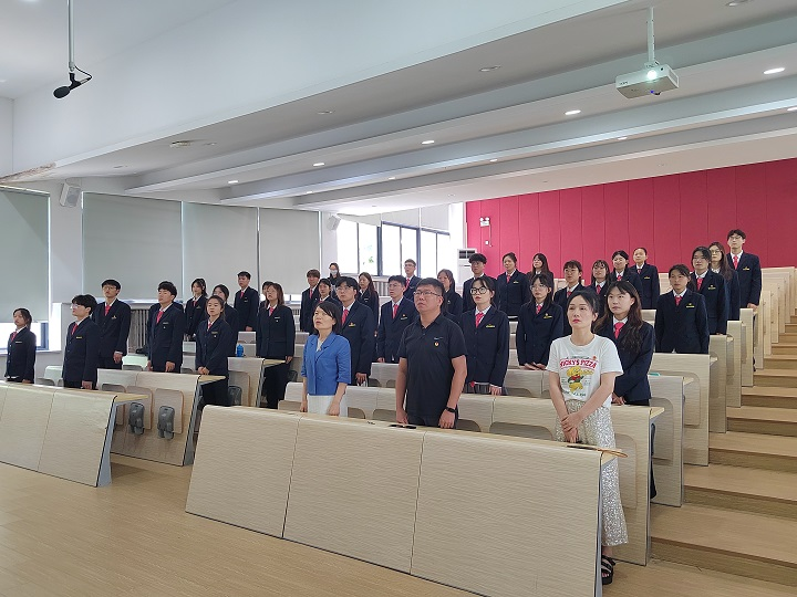为壮大中国共产主义青年团的鲜活力量,深化团的自身建设,切实培养团员的光荣感和使命感,增强团员的进取意识,为团组织注入新的活力,365VIP英国上市官网于5月15日12:30在教学四号楼118教室举办了隆重的入团仪式。出席本次仪式的有365VIP英国上市官网行政秘书兼团委书记陈刚老师,团委副书记支园园老师,22级团总支书记杨柳老师以及365VIP英国上市官网第28届团学组织主要干部。