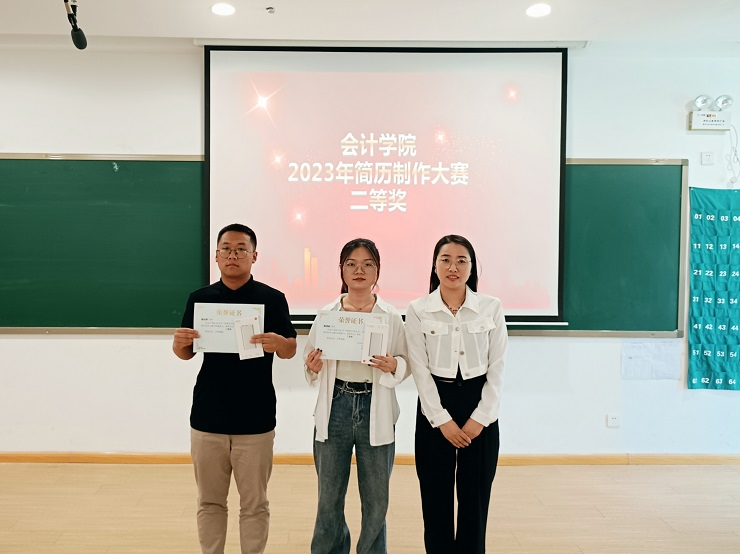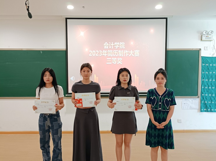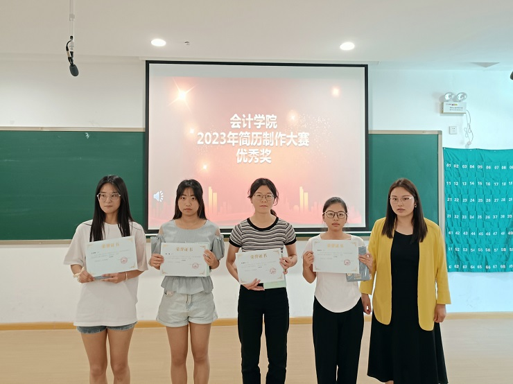 通过参赛的简历作品可以看出,同学们根据专业和自己的优势特点来设计制作简历,每一份都构思新颖、简洁实用、富有热情和艺术性,充分运用了自己所学的知识,回顾了自己大学期间接受的专业教育、获奖情况、社会实践等经历,明确了自身的求职意向,不仅展示了扎实的文字和语言表达功底,而且表现出过硬的专业知识、丰富的社会实践和端正的就业态度。最终,评委老师们以基础信息、个人经历、附加信息、艺术设计四项为评判标准,本着公平、公正的原则,仔细认真评阅,评选出了一、二、三等奖和优秀奖。并于6月9日中午在教学四号楼108由365VIP英国上市官网团委副书记支园园老师、年级团总支书记杨柳老师、刘海杰老师、双创工作专员胡淑娟老师分别对获奖人员进行了颁奖和表彰。