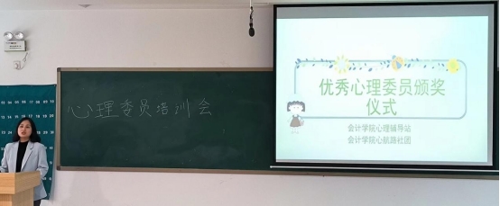 此次活动主要是心理委员培训和为优秀心理委员颁奖仪式两部分。首先由心理辅导站站长蔡艳丽老师、社团指导老师高园园老师以及心航路社长崔志敏讲解心理健康的重要性和如何保持良好的心理状态。此次活动主要以宣传、演讲、互动的形式对新航路社员和各班心理委员展开培训。