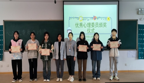 接着,由心理辅导站站长蔡艳丽老师和社团指导老师高园园老师为优秀心理委员颁发荣誉证书并合影留念。