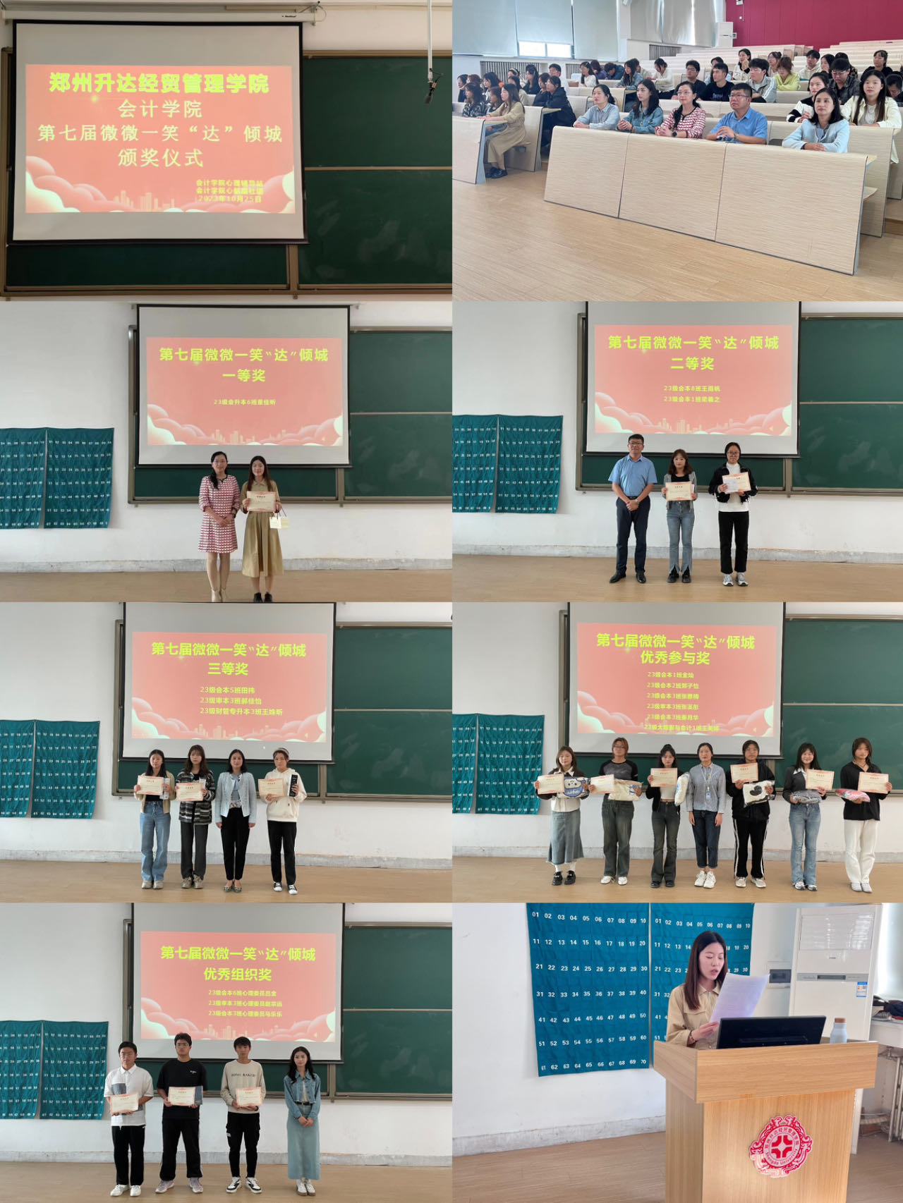 为了营造健康向上的校园氛围,培养同学们积极乐观的学习和生活态度,促进同学们身心健康发展。365VIP英国上市官网心理辅导站于10月17日-25日面向365VIP英国上市官网全体员工举办了第七届“微微一笑达倾城”作品征集大赛,并于10月25日在教学4号楼118教室举行颁奖仪式。