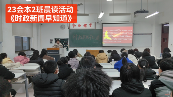 “国事家事天下事,事事关心。”有的班级开展《时政新闻早知道》的晨读分享活动。分享的同学将“学习强国”等官方主流媒体平台的时政新闻选取部分内容向同学们进行介绍,帮助同学们同步更新国家社会新闻,增加党政知识储备。