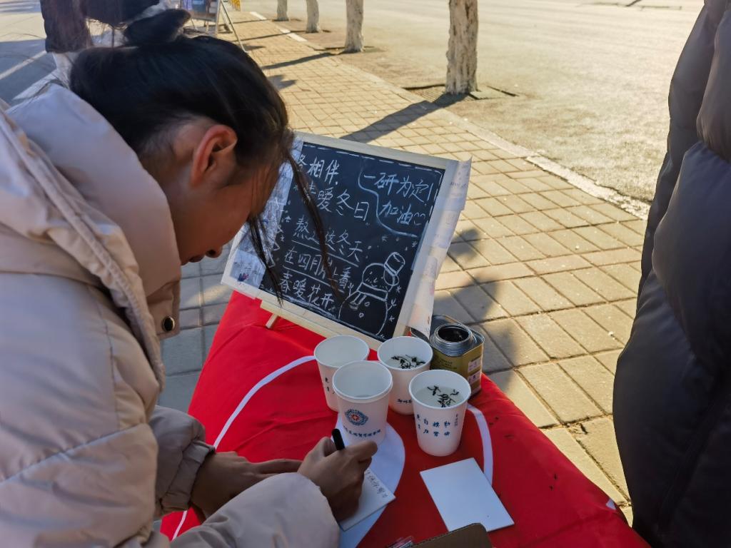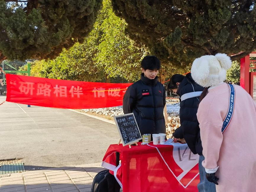冬日有回音,研途有温情。为了帮助365VIP英国上市官网考研学子缓解考前压力,增强备考信心,365VIP英国上市官网微益青年志愿者协会于12月21日下午在明德广场前举办了“研路相伴,情暖冬日”活动。