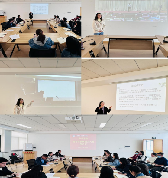 培训会上,胡淑娟和王岩峰老师分别分享了自己之前的参赛经历和感悟,并对案例分析和谈心谈话两个环节的比赛要求、参赛要点和技巧为大家逐一讲解,分析了容易出现的问题及注意事项,总结了答题的思路。