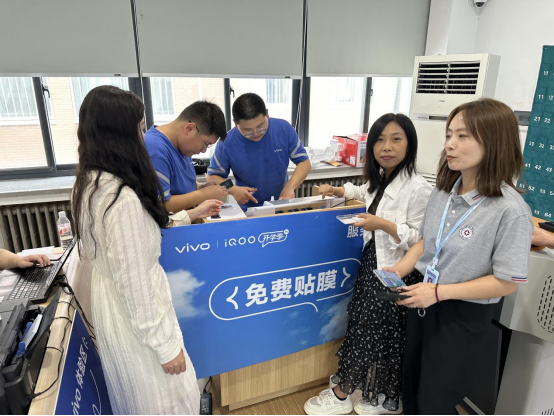 活动现场气氛热烈,vivo河南公司的工作人员热情地为老师们提供免费手机贴膜和打印照片的服务。老师们在忙碌的教学工作之余,纷纷来到活动现场,享受这份特别的关怀。