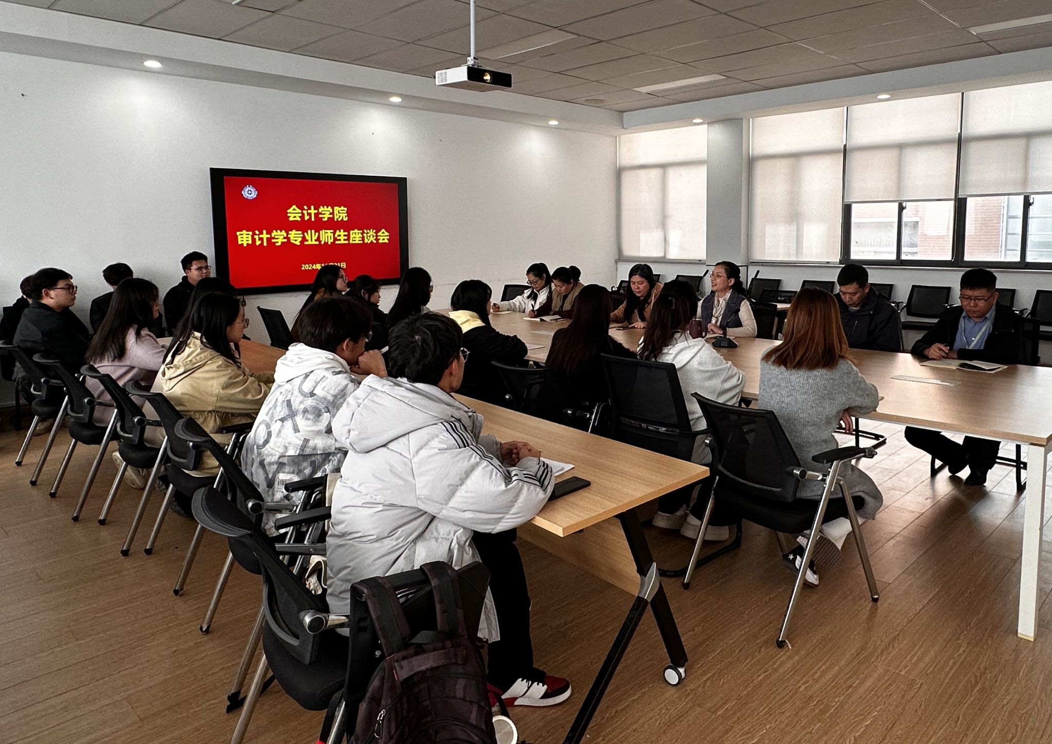 然后,参会代表分别代表21级、22级、23级、24级审计学专业员工发表了就业、专业学习、考证、在校生活等方面遇到的问题。