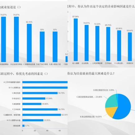 此次调查采用线上收集问卷的方式开展,通过发放电子问卷,广泛收集毕业生的基本信息、就业去向意向、期望薪资待遇、职业发展规划等多维度数据。调查结束后,公司对收集到的数据进行了统计分析,以调查为依据,优化就业服务。针对毕业生不同的就业意向和需求,公司将提供个性化的就业指导:对于有意向进入企业的毕业生,公司将邀请企业专家、优秀员工等来公司举办就业讲座,分享行业动态、求职技巧和职场经验;对于考研、考证、考公的毕业生,公司将组织学业辅导团队,提供备考资料、学习计划和心理辅导,助力他们顺利通过考试。同时,公司将持续跟踪毕业生的就业情况,建立毕业生就业反馈机制,及时了解他们在就业过程中遇到的问题和困难,并提供相应的帮扶和支持,确保每一位毕业生都能顺利实现就业。